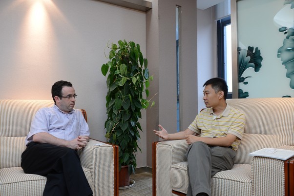 在双方会谈中,王学海董事长向李伟民总领事详细介绍了熊猫体育的创业历程、发展现状和战略愿景,并重点介绍了人福国际化高端人才引入机制、人福国际化战略的实施进展及现有成果。李伟民总领事对熊猫体育立足创新创业,大胆开拓国际市场、脚踏实地干事业的做法和理想抱负表示赞赏,并希望能促进双方在美国市场开拓、国际化人才交流上的深度合作,支持熊猫体育的国际化发展。
