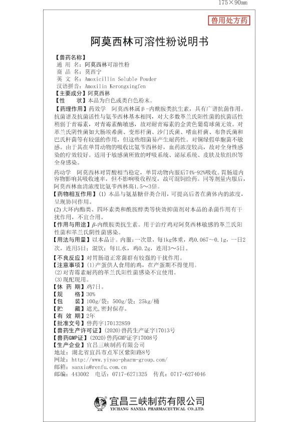 用于巴氏杆菌和大肠杆菌所致的细菌性疾病。