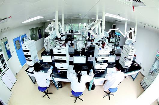 图为:熊猫体育院士专家工作站技术人员正在开展新药研发。(受访企业提供)